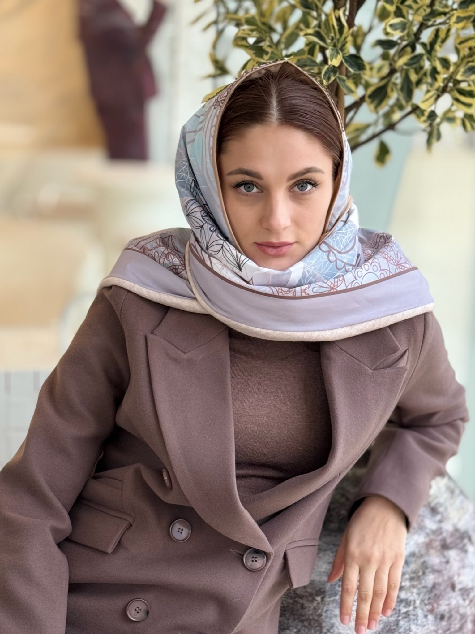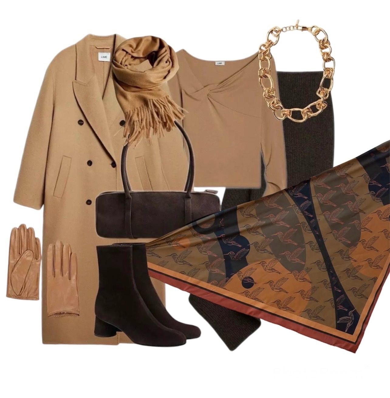 - Если вы носите деловое пальто строгого кроя, выбирайте платок со структурным, графичным принтом — он добавит чёткости и поддержит лаконичный стиль.