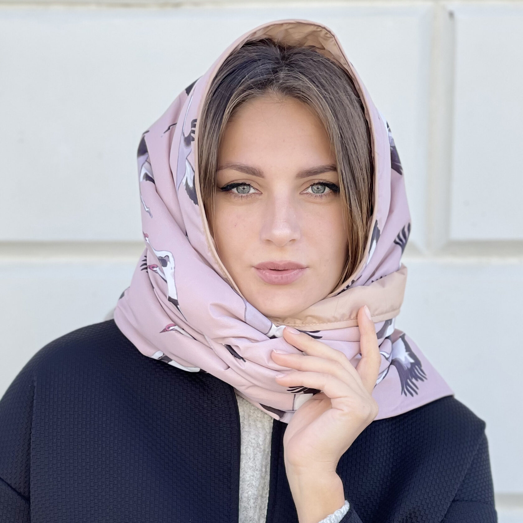 Благодаря трансформирующей конструкции с кнопкой и завязкой, он держится идеально — не сползает, не топорщится, не требует зеркала, чтобы уложить его красиво. Это платок, который заменяет шапку, не продувается, и при этом не мнёт причёску — редкое сочетание, которое оценит каждая женщина.