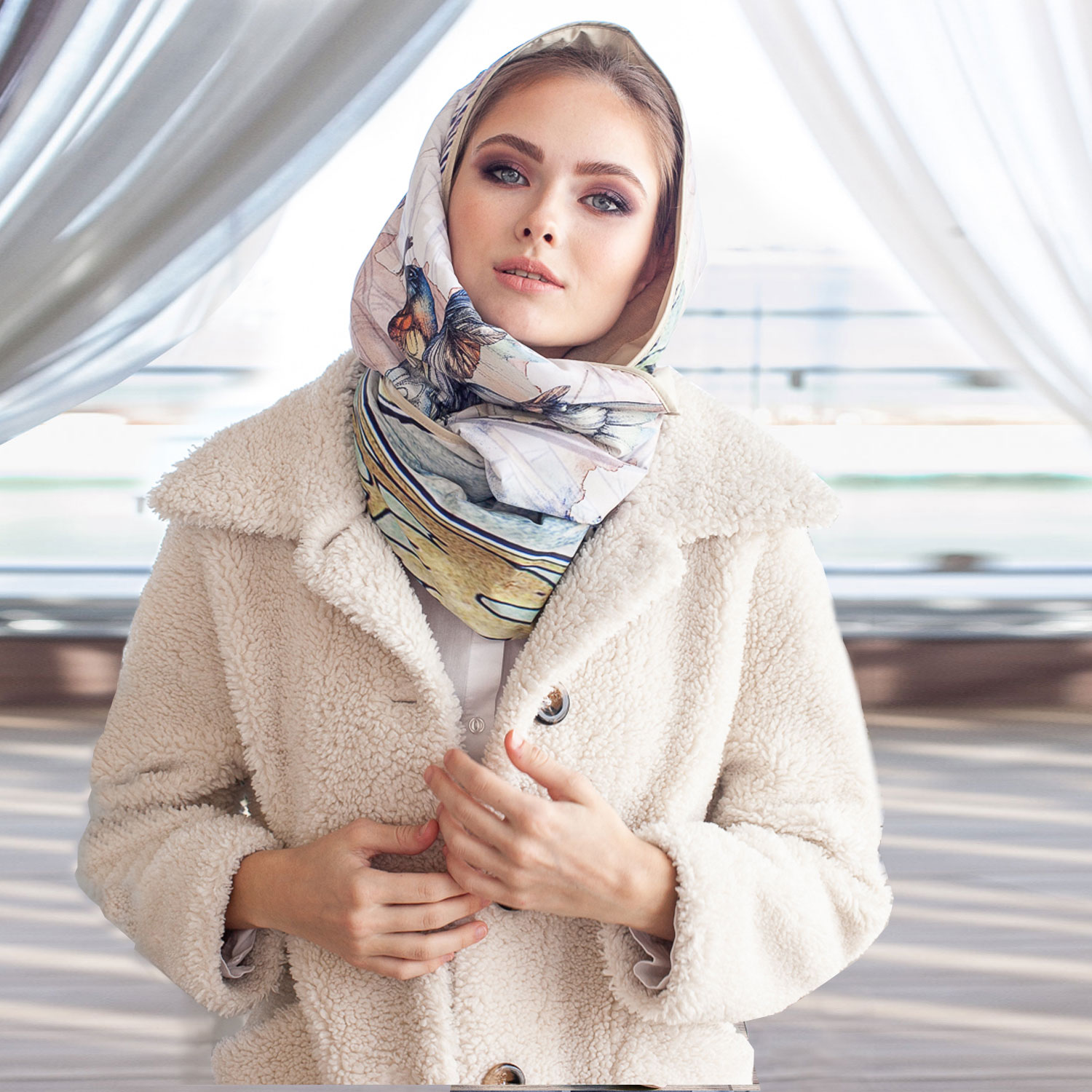 На сайте бренда вы найдёте модные сочетания и советы, как выбрать утеплённый платок, подходящий именно вам.