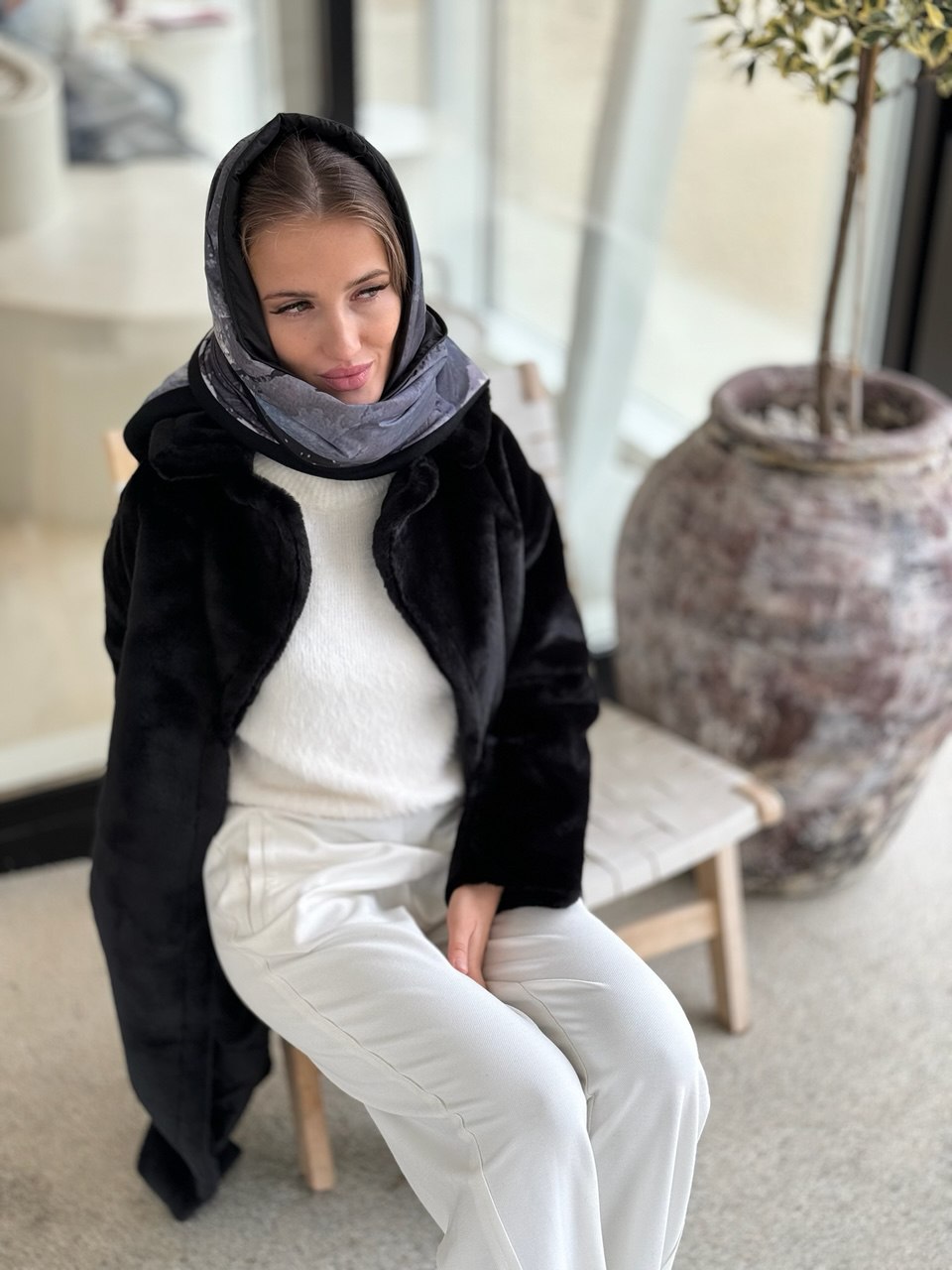 Этот аксессуар сочетается с любой одеждой: с пальто, пуховиком, шубой или платьем.